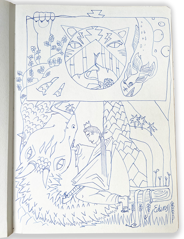 “When I draw with ballpoint, marker, or any other medium that can’t be undone once the line is set, I discover a visual handwriting of its own—stories that unfold through play and imagination. That flow is always the starting point for my illustrations.”