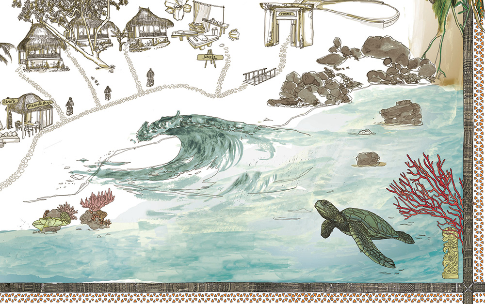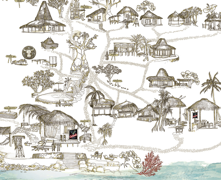 2015 & 2013 – For Nihiwatu — a remote luxury resort on Sumba known for its untouched nature, deep cultural roots, and the world-famous surf break God’s Left — I created an illustrated map capturing the character of the island and the resort. The artwork highlights key locations, natural landmarks, its iconic wave and birds to spot in the wild. It serves both as a practical guide for guests and a visual celebration of the island.